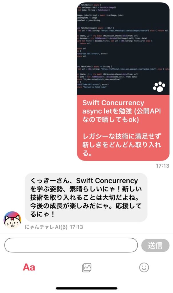 AIの猫ちゃんがレスしてくれてる、おもしろい。